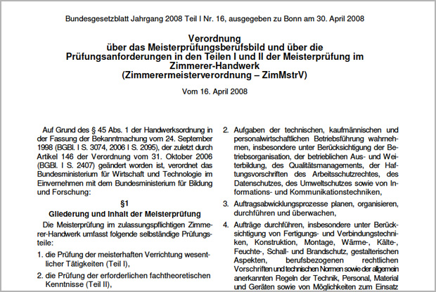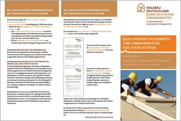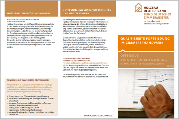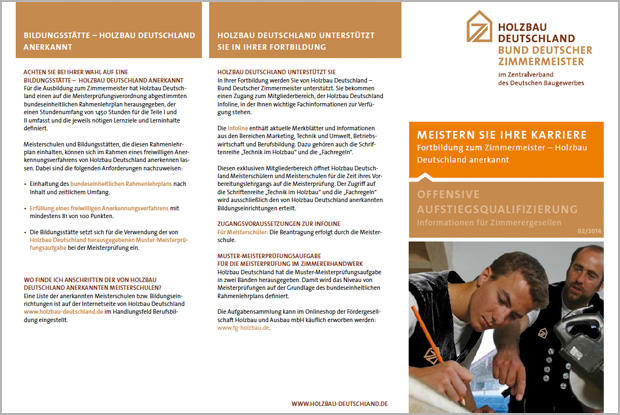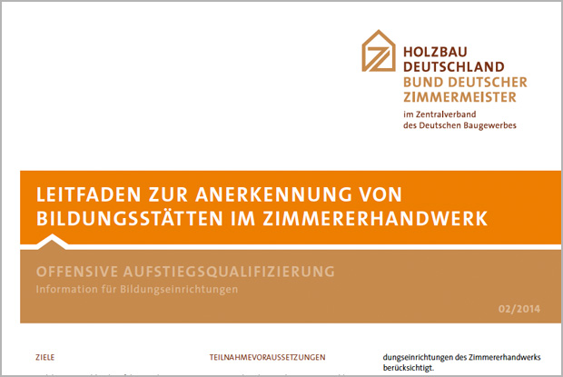Kennzeichnend für eine Fortbildung ist, dass sie durch Gesetze oder Verordnungen geregelt ist und auf eine Ausbildung folgt. Die „Offensive Aufstiegsqualifizierung“ des Zimmererhandwerks bildet mit dem Vorarbeiter, Werkpolier und geprüftem Polier bis hin zum Zimmermeister eine optimal abgestimmte Karriereleiter an.