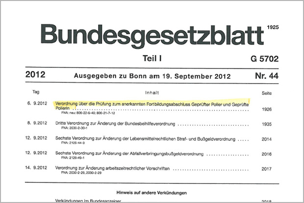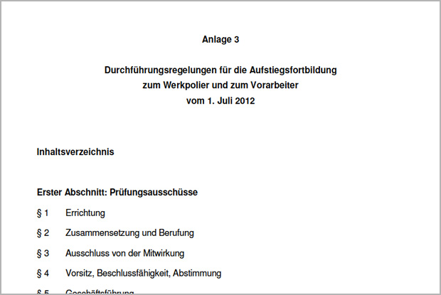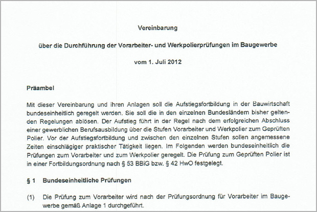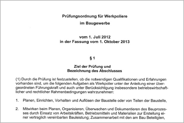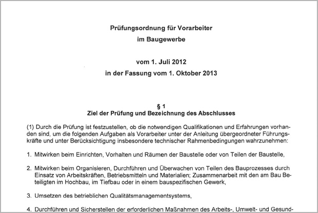 Rahmenlehrpläne Vorarbeiter, Werkpolier, geprüfter Polier, Prüfungsordnungen