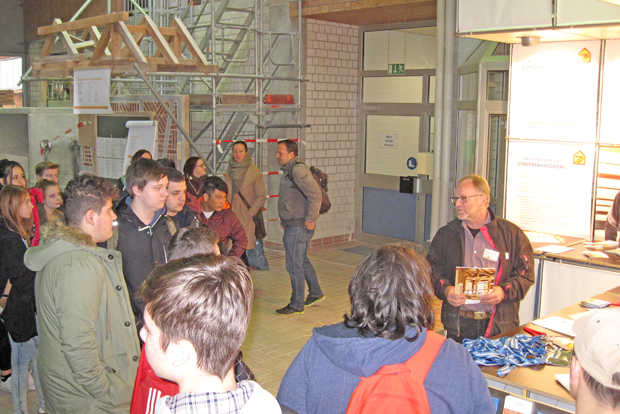 Auch am Zimmerer-Ausbildungsstand bekamen die Jugendlichen in Coburg viele Infos über den Beruf des Zimmerers.
