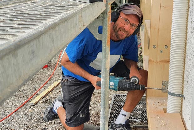 Ein Vierteljahrhundert arbeitete Markus Andres als selbstständiger Messebauer – doch dann kamen die Corona-Pandemie und damit Existenzängste. Deshalb startete der 50-Jährige im vergangenen September eine Zimmerer-Ausbildung beim Innungsbetrieb Zimmerei Leopold Göring in Starnberg. Andres sagt: „Das Zimmererhandwerk hat mir die Haut gerettet.“