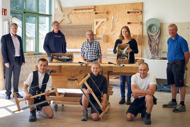 Demnächst haben die Zimmerer-Azubis Christina Hartl und Maxi Kirr ihr Berufsgrundschuljahr hinter sich. Währenddessen standen sie dem LIV immer wieder für Interviews zur Verfügung. Als Dank dafür erhielten sie Zimmerer-Werkzeug, damit sie gut gerüstet in ihr 2. Ausbildungsjahr starten können.
