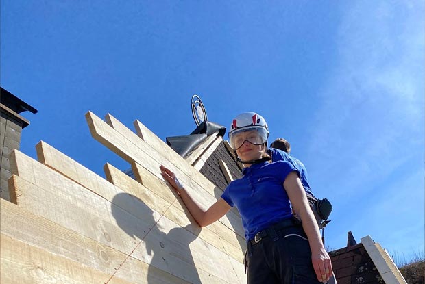 Die angehende Zimmerin Christina Hartl (17) kommt immer noch ins Schwärmen, wenn sie an die Baustelle während ihres Pflichtpraktikums denkt: „Auf dem Dach hat es mir sehr viel Spaß gemacht. Wir hatten eine super Aussicht auf die Berge und konnten über alles drüber schauen. Und von oben hat man die Wärme von der Sonne gespürt.“